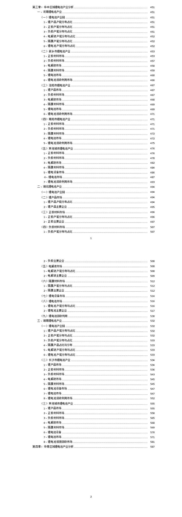 2021版华中地区锂电池产业链投资布局分析报告目录(湖南+湖北+河南)