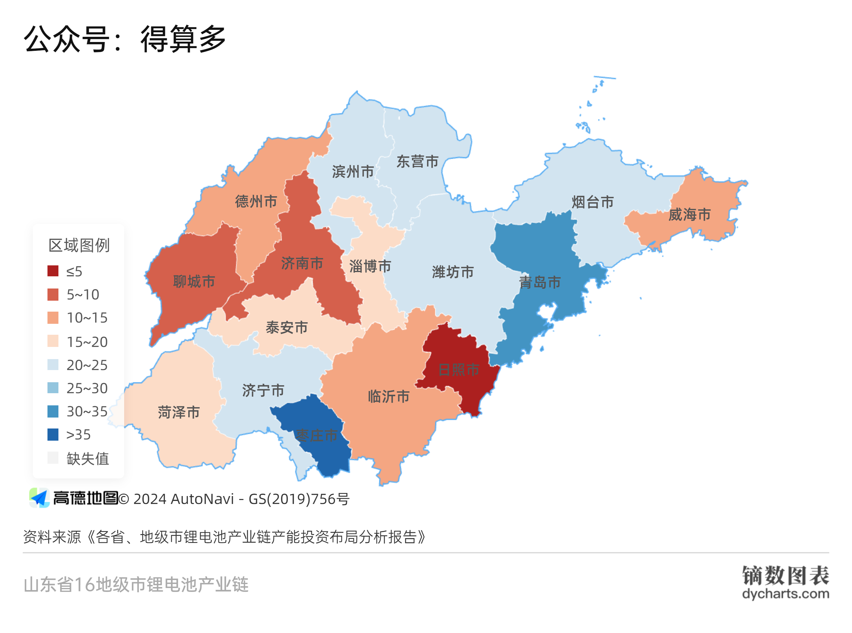 山东省16地级市锂电池产业链上下游生产企业产能投资布局分布图