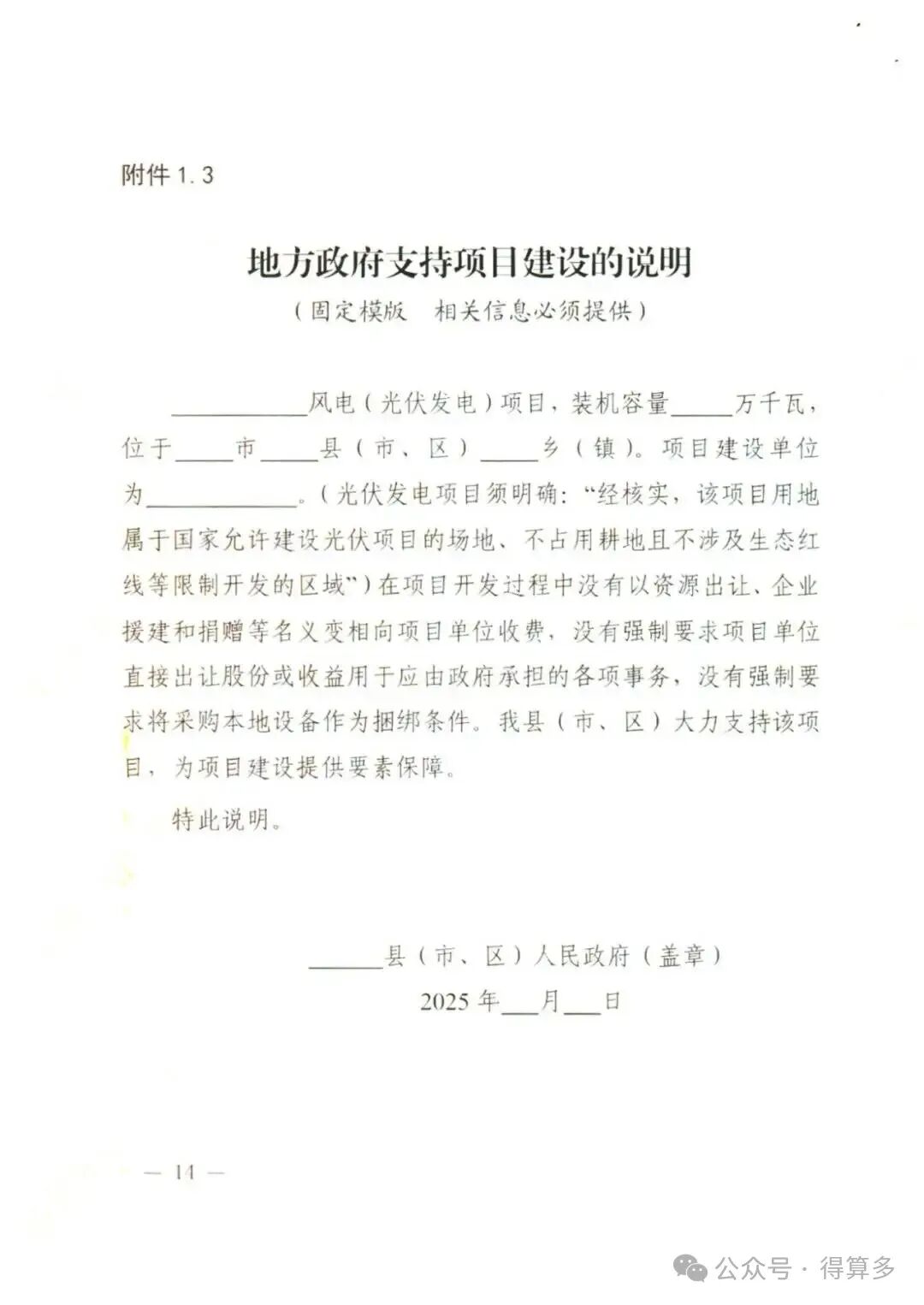 2.3 支持性文件。县级人民政府出具的支持项目建设的说明:县级自然资源、林草、环保等部门出具的支持性文件。
