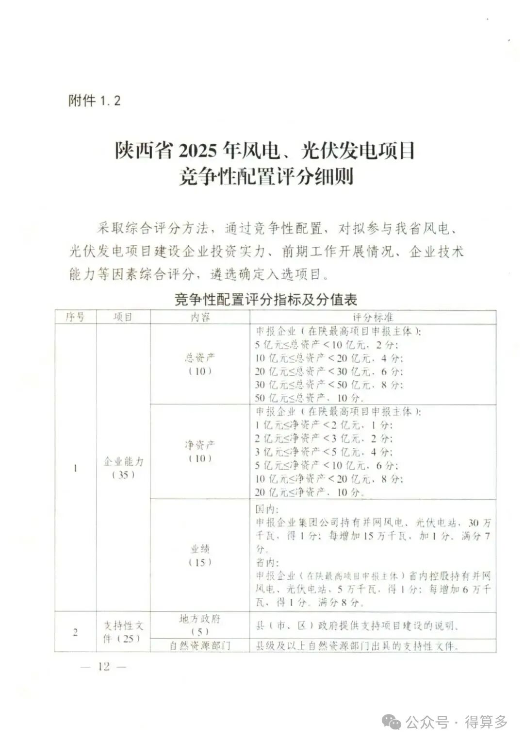 陕西省2025年风电、光伏发电项目竞争性配置评分细则