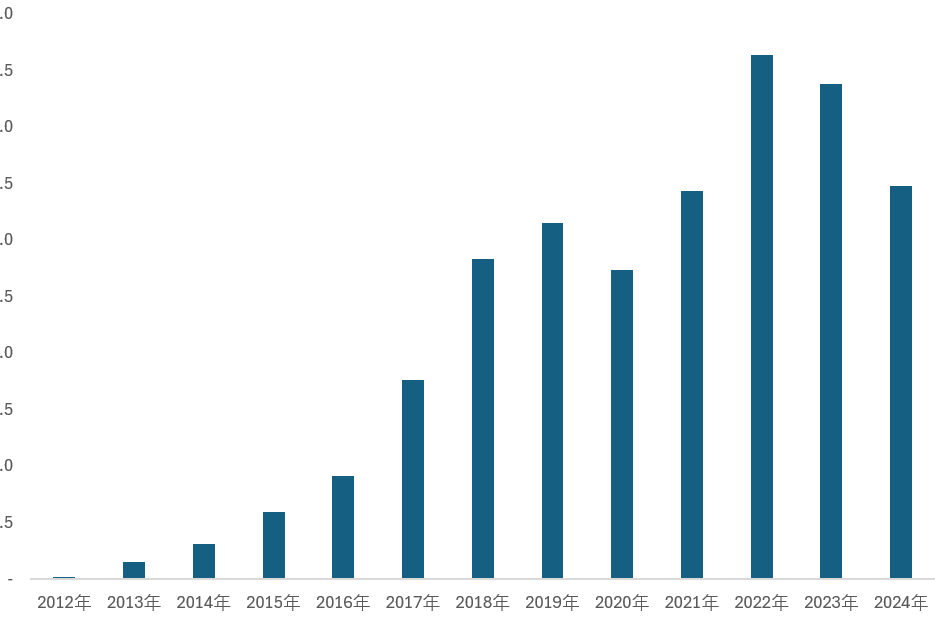 全球各国风电:2012-2024年巴基斯坦年风电发电量规模走势