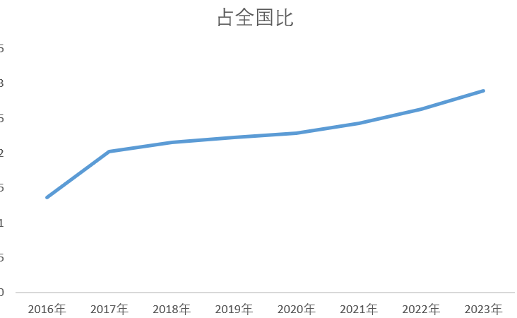 3、2016-2024年清洁能源发电装机容量占全国比重