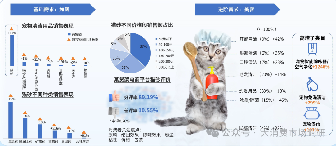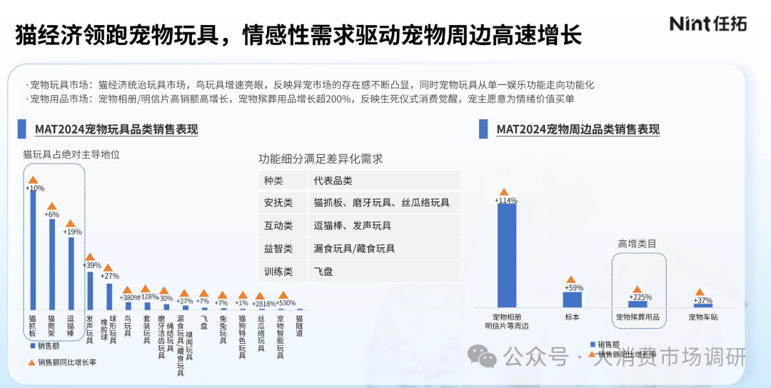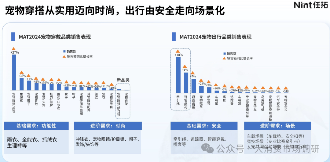 宠物用品越做越细,其中宠物家居、清洁用品占用品赛道80%份额,玩具、穿戴用品增长超20%,成为新兴的增长点