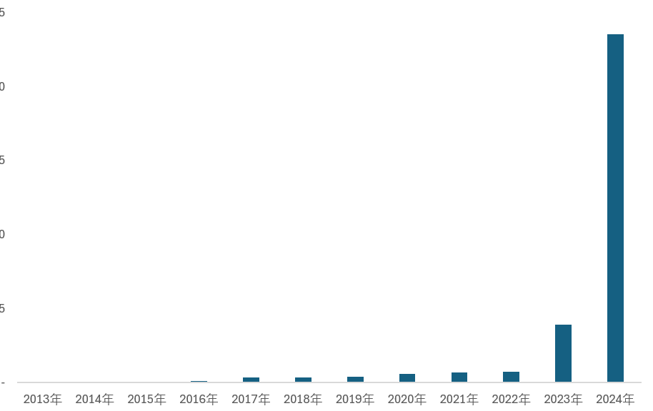 2013-2024年加拿大历年电化学储能装机容量规模走势