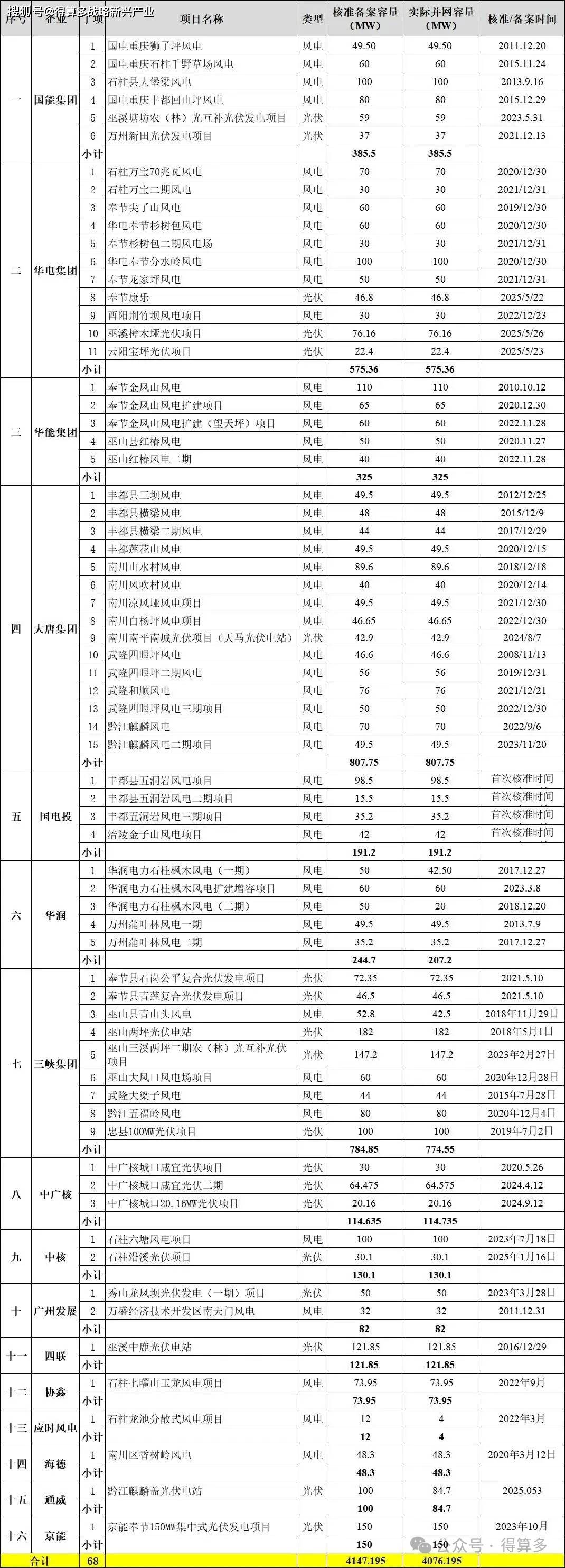 集中式项目共计68个,核准备案容量总计4147.195MW,实际并网容量总计4076.195MW,包括:风电项目49个,核准备案容量总计2748.3MW,实际并网容量总计2692.5MW;光伏项目19个,核准备案容量总计1398.895MW,实际并网容量总计1383.695MW。