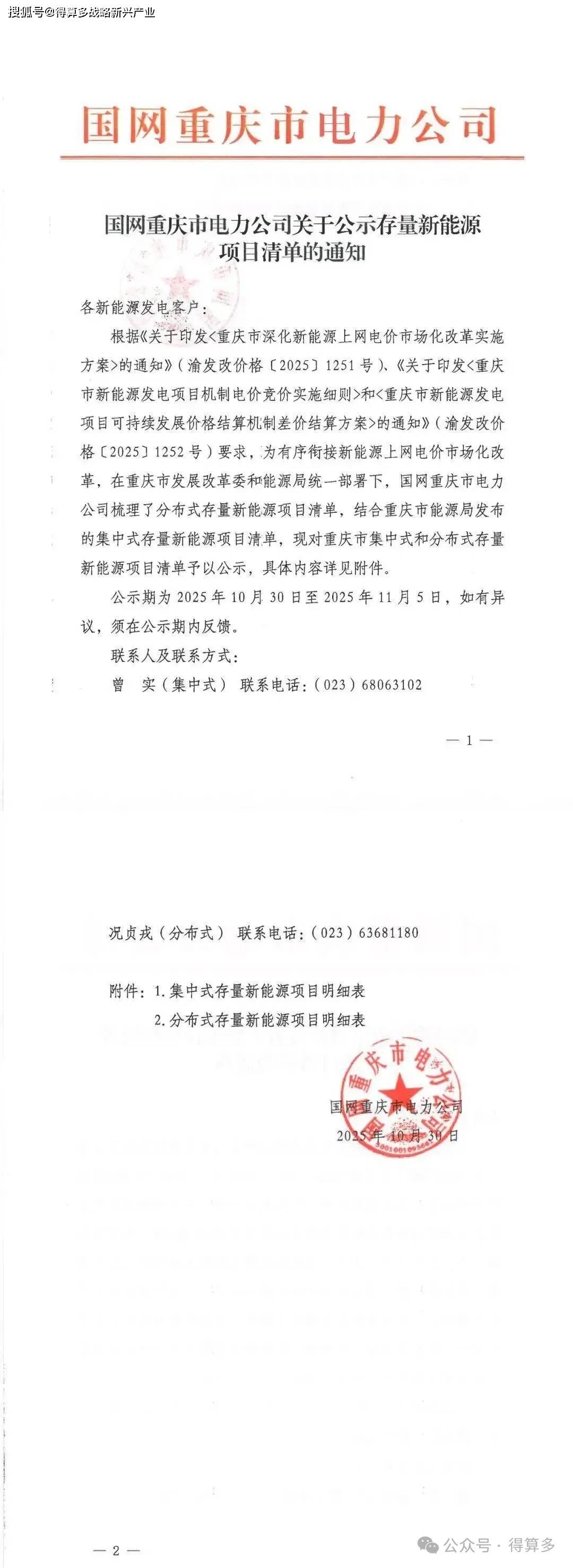 10月29日,重庆发改委、经信委、能源局发布《关于2025—2026年度新能源机制电价竞价工作有关事项的通知》。明确机制电量总规模为48.6亿千瓦时(按全年计算),其中,风电为22.6亿千瓦时,光伏发电为26亿千瓦时。