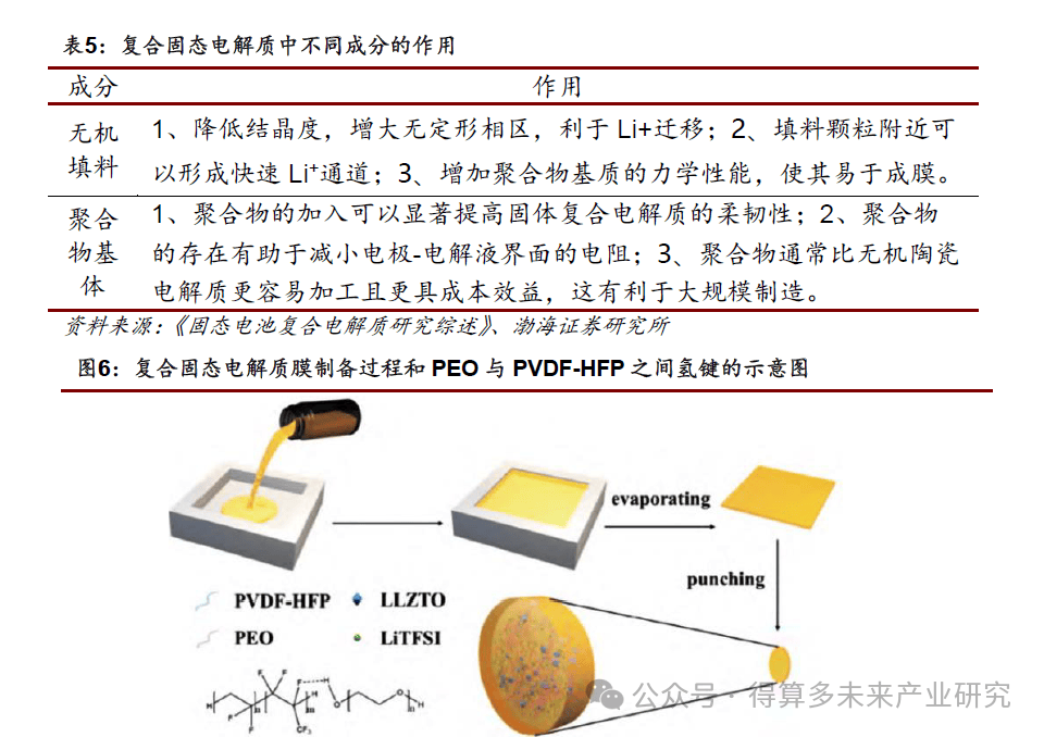 聚合物电解质成本低易加工,但离子电导率低,适用于消费电子领域。聚合物固态电解质通常由含有极性官能团的聚合物和溶解在其中的锂盐构成,聚合物基质充当主体材料,同时作为锂离子运动的载体,赋予电解质良好的机械强度和柔韧性,而锂盐则作为载流子,溶解在基质中。聚合物固态电解质可分为聚环氧乙烷“( PEO)、聚碳酸酯“(PCE)以及聚合物锂单离子导体三大体系,各具特色的分子结构和传导机制为其带来了不同的应用前景。尽管聚合物固态电解质在加工性能、界面相容性和成本控制方面具有显著优势,但仍面临若干关键挑战:例如,室温电导率需进一步提升、电化学窗口需拓宽、高温稳定性有待改善。随着材料体系的持续创新和制备技术的进步,这类电解质有望在柔性电子设备和微型储能器件等领域率先实现产业化突破。