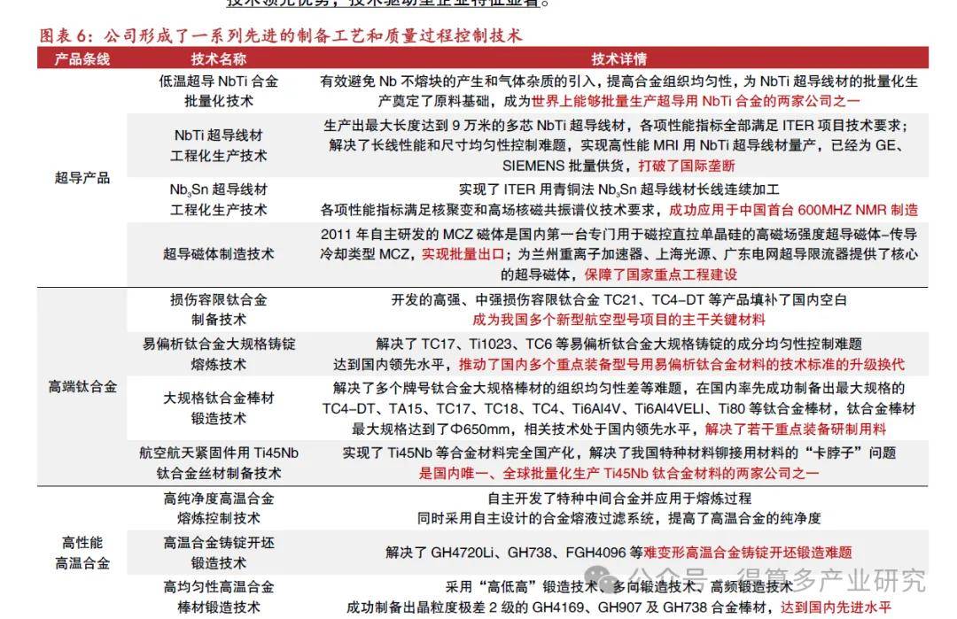 1.国内超导龙头、钛合金和高温合金重要供应商,