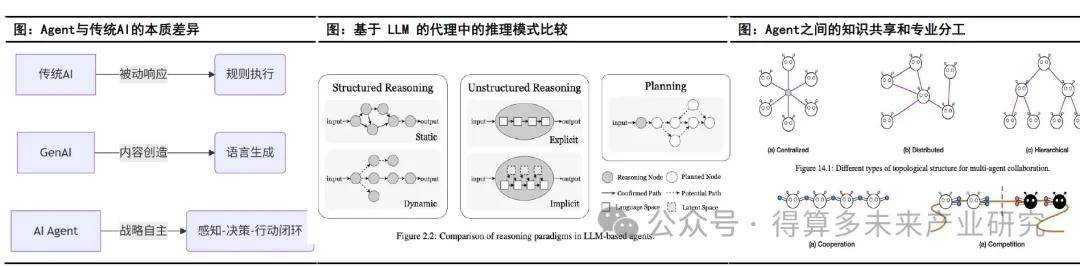 • 关键区别:1)LLM≠Agent:LLM是“知识顾问”,Agent是“战略指挥官”;2)传统自动化:仅规则执行 vs Agent:端到端任务闭环。