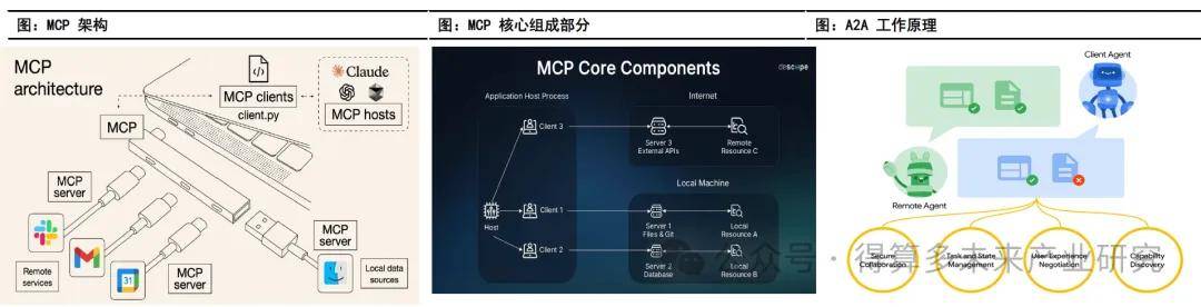 Ø Anthropic在2024年11月推出并开源MCP协议,支持并行工具调用(如Web搜索、代码执行)和动态工作流编排。核心组件: