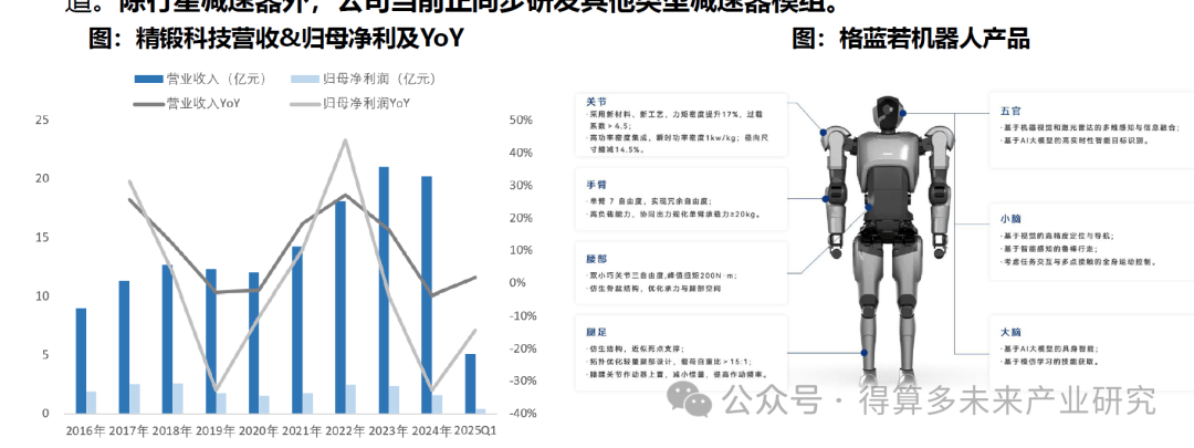 ◼ 合资公司落地&入股格蓝若加码机器人关节模组业务布局。2025年3月,公司与天津爱码信自动化技术有限公司成立合资公司江苏太平洋智能关节有限公司,公司持股90%,布局机器人关节及精密减速器赛道;2025年6月,以5000万元获格蓝若10%股份,布局具身整机赛道。除行星减速器外,公司当前正同步研发其他类型减速器模组。