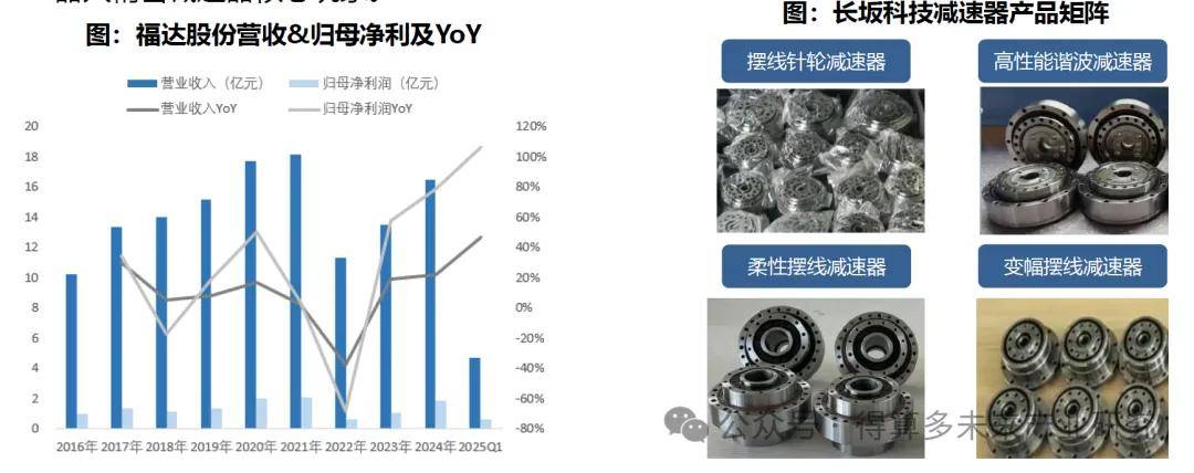 ◼ 2025年3月,福达通过增资和股权收购的方式,获得长坂(扬州)机器人科技有限公司35%的股权。长坂科技当前产品以行星滚柱丝杆、谐波减速器、摆线减速器为主。24H2,福达完成首个行星减速器产品样件台架测试,叠加丰富的精密减速器产品矩阵,有望成为机器人精密减速器核心玩家。