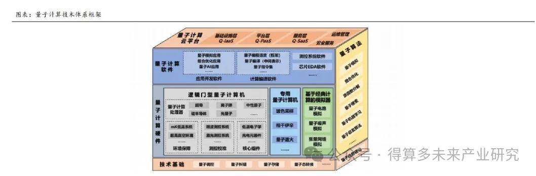 1、量子计算技术体系框架:软硬件+算法支撑技术体系,云平台整合生态
