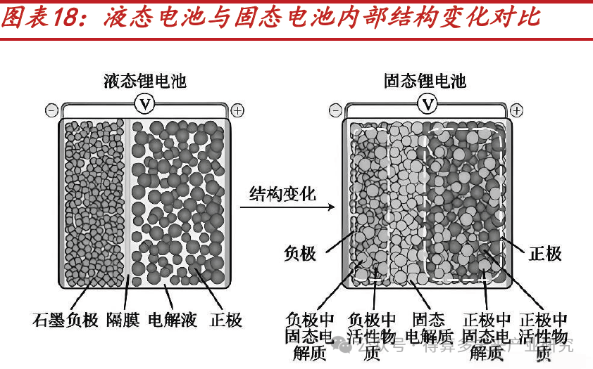 无粘结剂的正极架构设计和固-固接触界面有效提升固态电池能量密度。固态电池采用冷压成型技术,将正极活性物质与固态电解质粉末直接压制成型,无需使用粘结剂,这种设计能够提高活性物质占比,使电池单位体积内可嵌入更多锂离子;同时固态电解质特有的固-固接触界面,抑制了高压条件下正极材料与电解质的副反应,避免了传统液态体系中常见的过渡金属溶出和晶格氧流失问题。这种双重优化使得单位体积内可存储的锂离子密度显著提高,进而突破了传统液态锂电池的能量密度天花板。