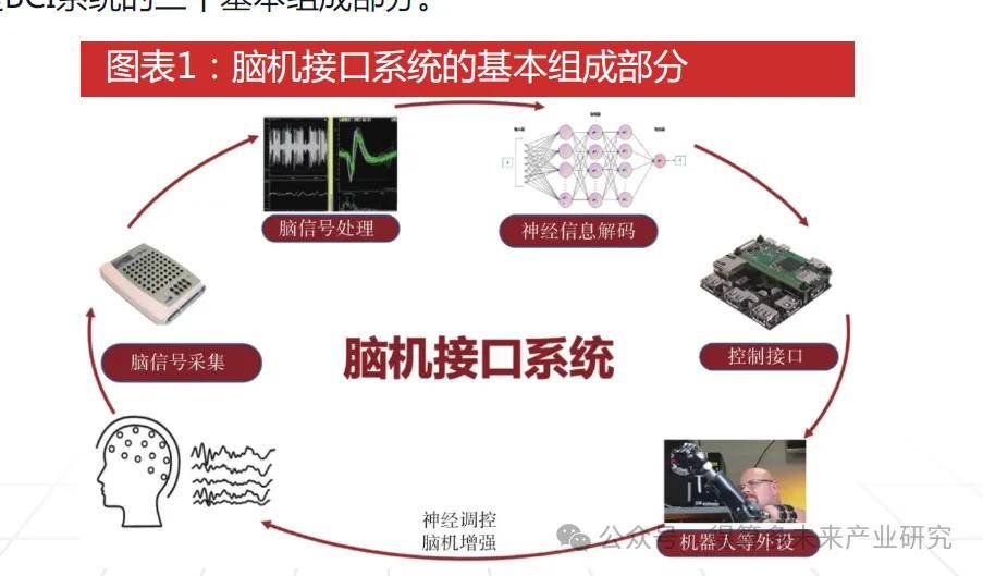 n BCI系统不仅仅是单纯的技术集合,它涉及了多类技术和学科的综合交叉,是一个复杂的科学与工程系统。BCI系统集成了神经科学、信号处理、计算机科学、人工智能以及电子工程等多个领域的知识。BCI系统主要由用户(大脑)、脑信号采集、脑信号处理与解码、控制接口、机器人等外设和神经反馈构成。其中,最核心的是脑信号采集、脑信号处理与解码、控制接口,它们是BCI系统的三个基本组成部分。