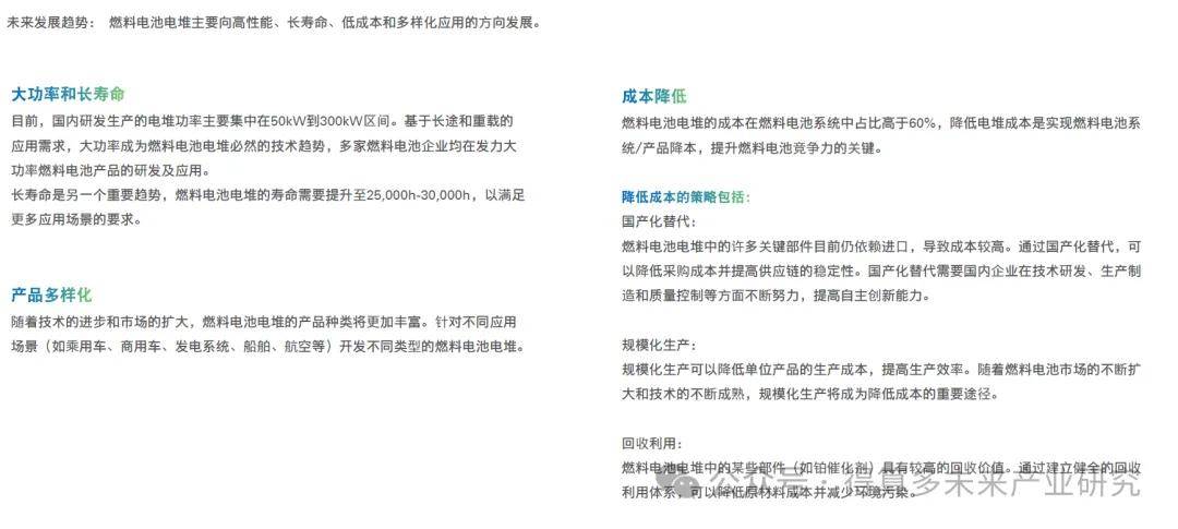 ⽬前,我国氢燃料电池电堆的制造已实现国产化,成本下降较快。未来,国产技术将继续突破,市场竞争愈发激烈,政府持续⽀持氢燃料电池产业发展,电堆价格将进⼀步下降,。