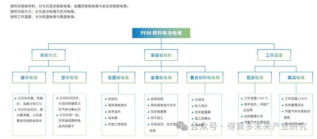 燃料电池电堆是燃料电池系统的功能核⼼,由多个单体电池以串联⽅式层叠组合构成,以提⾼燃料电池的输出电压和功率。电堆包括膜电极、双极板、集流板、端板、密封组件、紧固件和外壳。