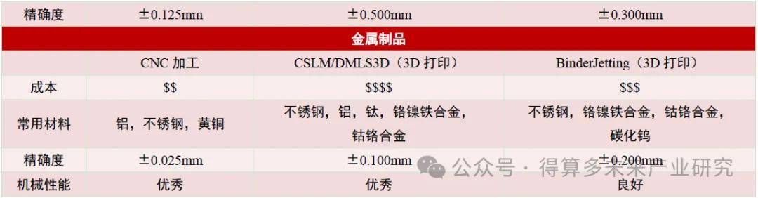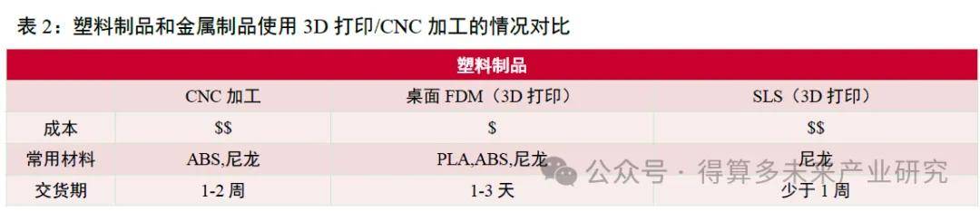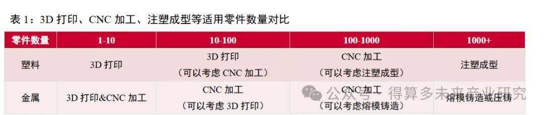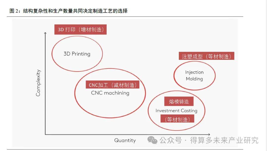 (1)增材制造与传统加工方式(CNC加工、注塑成型)各有优势