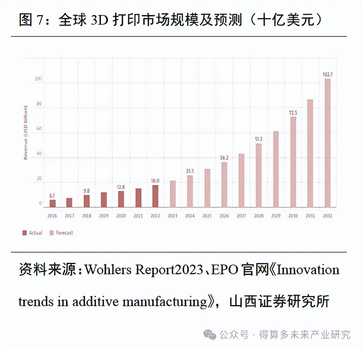 3、未来全球3D打印市场规模将超千亿美元,中国市场下游细分领域拓展前景广阔
