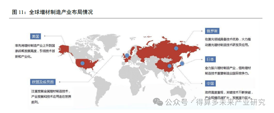 4、全球3D打印市场长期由欧美主导,中国在设备制造环节后来居上