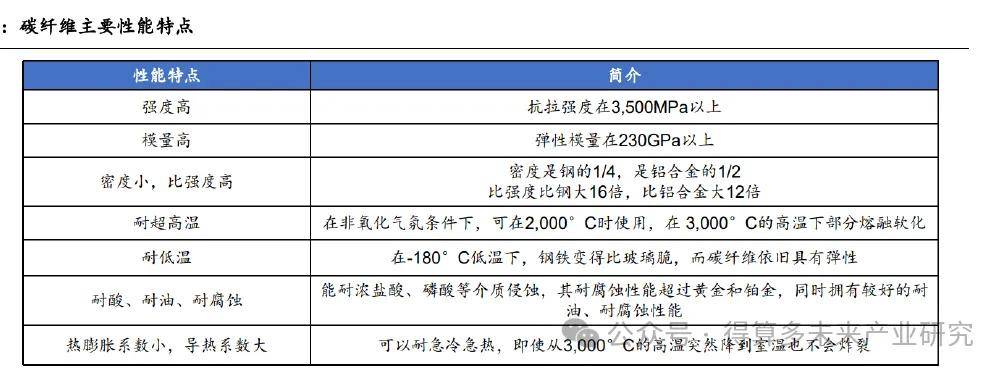 碳纤维(Carbon Fiber)是一种丝状碳素材料,由有机纤维经碳化以及石墨化处理而得到的微晶石墨材料,直径5-10微米,含碳量高达90%以上。碳纤维力学性能优异,同时具有轻质、高强度、高弹性模量、耐高低温、耐腐蚀、耐疲劳等优异特性,广泛应用于航空航天、国防、交通、能源、体育休闲等领域。