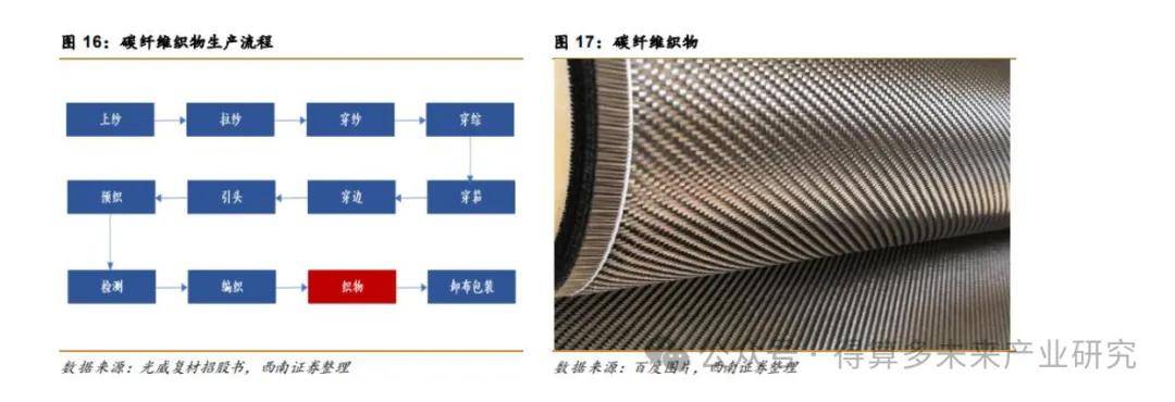 碳纤维织物是通过连续碳纤维的相互交叉、绕结等构成的片状材料,按生产工艺的不同又分为机织物和经编织物,按照花纹可以分为平纹、缎纹、斜纹等多种类型。