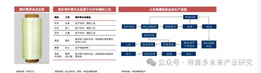 以聚丙烯腈基碳纤维为例。丙烯腈原材料丰富易得,可从石油、煤炭、天然气等化石燃料中制备得到。