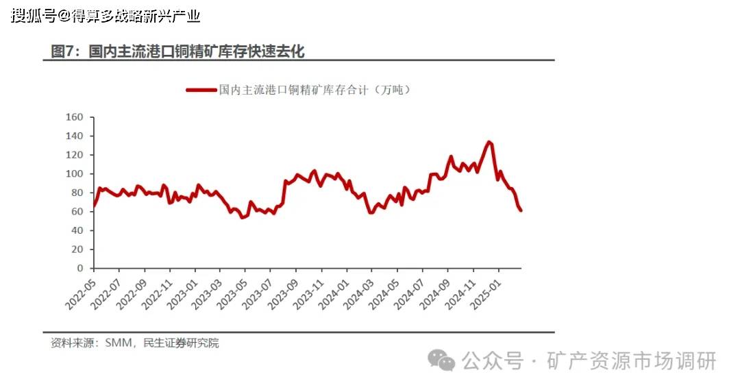 国内电解铜产量侧面印证冶炼厂消耗库存大,电解铜高产量不可持续。SMM月度数据来看,2024年中有8个月月均产量都超过了100万吨,同比增长量级为62万吨;2025年1-2月产量续创新高。我们认为在供给收缩的趋势下,这样的高产量背后体现的是冶炼厂大幅消耗自身库存,同时这样的高产量状态是不可持续的。