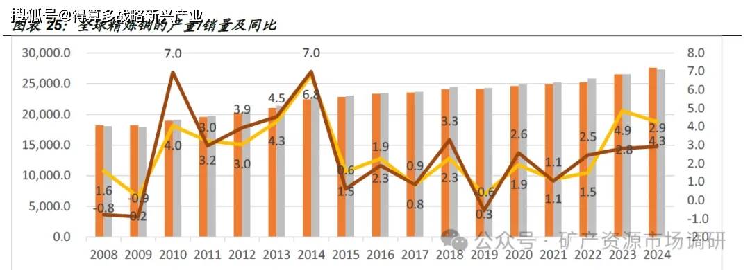 ⚫ 2024 年精炼铜产量达1364.4 万吨(占全球49. 9 %%,全球最大生产国),同比增长2.9 %%,主要依赖新冶炼厂投产扩建及再生铜产能提升。