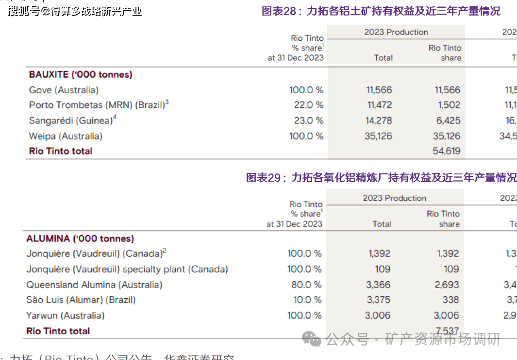 1、2024年3月力拓旗下氧化铝厂天然气管道破裂减产120万吨,预计2024年底完全恢复。
