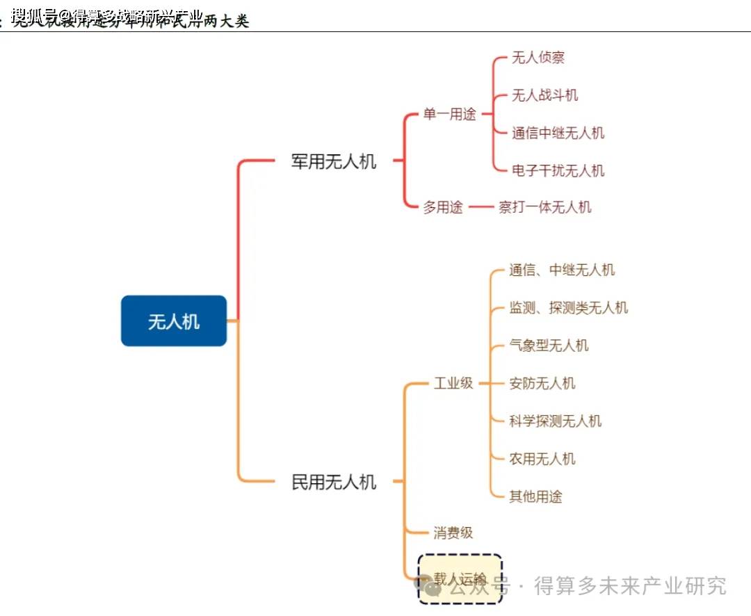 根据用途的不同,无人机主要分军用和民用两大类。其中,民用无人机进一步划分为工业级和消费级无人机(以及无人驾驶航空器)。