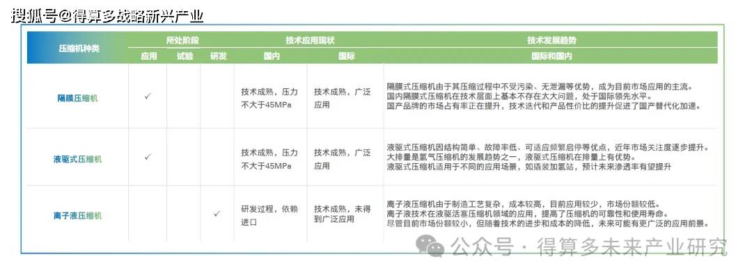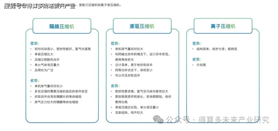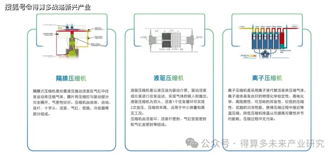 总体来看,隔膜式压缩机因其成熟度高和应用广泛而成为市场主流,液驱式压缩机凭借其在排量和适应性方面的优势逐渐受到重视,而离子液压缩机虽然目前市场份额较小,但技术创新可能带来新的市场机会。随着氢能产业的快速发展,这些技术将继续演进以满足不断增长的市场需求。