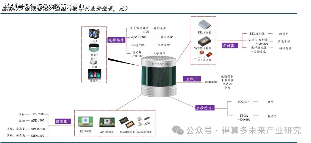 键环节。上游零部件制造商主要供应光学组件、发射器、探测器等,构成发射模块、接收模块、扫描系统和信息处理