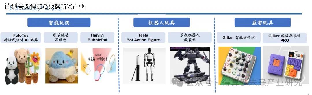 第二,玩具的载体产品形态丰富,AI可融合赋能范围广。普通玩具的产品形态丰富,包括毛绒玩具、盲盒公仔、手办模型、收藏卡牌、益智玩具等等。AI玩具目前主要形态包括:(1)智能玩偶:主要采取传统毛绒玩具+内置云端AI对话方案的形式,典型产品如FoloToy的火火兔、字节跳动的显眼包等;亦有单独售卖的AI对话交互挂件,如Haivivi的BubblePal。(2)机器人玩具:主要特点是可动性和灵活性较强,典型产品如Tesla Bot Action Figure、乐森威震天。(3)益智玩具:将AI人机对战模式引入传统益智玩具,典型产品如giiker计客的智能四子棋、超级华容道等。