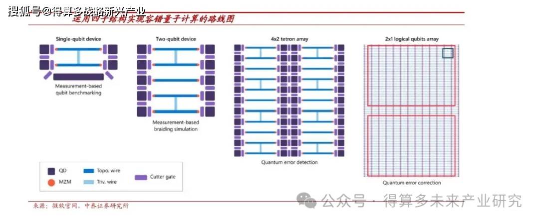 纠错过程简化:相较传统方法,微软此次的测量方法是完全通过由简单数字脉冲激活的测量来执行纠错。这种数字控制方法在有效管理量子比特方面的可行性更高,下一步将涉及4×2tetron 阵列。