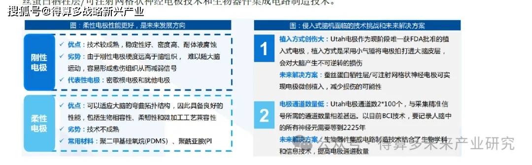 需要借助一定形式的外科手术来实现,其过程为移除一部分颅骨,在大脑中植入电极或植入物,再将移除的颅骨部分放回原处,其采集电极主要分为刚性电极和柔性电极。刚性电极技术较为成熟,但存在容易减弱信号的劣势,因而柔性电极或成为未来发展方向。