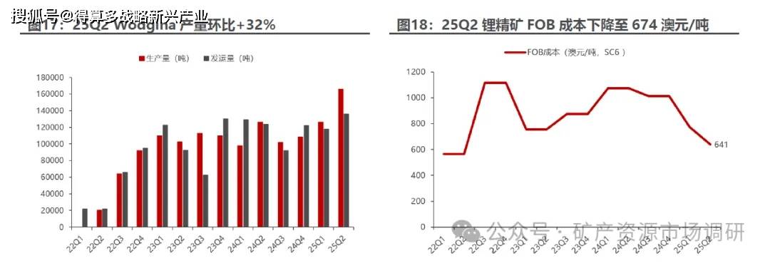 产能利用率快速提升,成本压力仍较大。1)量:矿山24年7月投产,25Q2平均产能利用率提升至96%,爬坡较快,25Q2锂精矿产量8.6万吨,环比-10%,销量9.7万吨,环比+4%;2)价:25Q2锂精矿折SC6售价为740美元/吨,环比下降9%;2)本:25Q2单位运营成本(FOB)为898澳元/吨(576美元/吨),环比+27.9%,AISC成本为1227澳元/吨(786美元/吨),环比-24.3%。