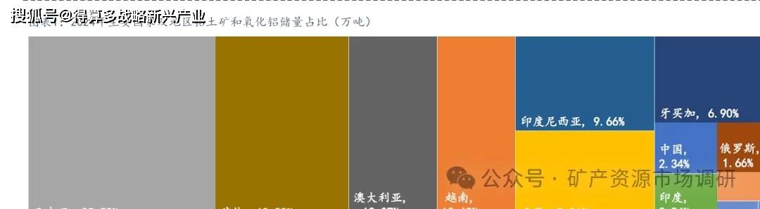 铝是地球上储量最丰富的金属元素,以铝土矿的形式存在。几内亚拥有世界上最大的铝土矿储量,约为74 亿吨,占世界总储量的25.52%左右,位列第一,澳大利亚占比12.07%,越南占比10.69%,印度尼西亚储量占比9.66%,巴西占比9.31%,前5个国家全球占比高达67.25%。中国铝土矿储量较低,只有2.34%。