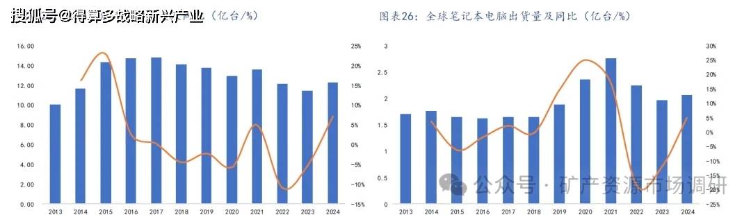 稀土永磁磁性高、体积小是手机、TWS耳机和电脑产品的主要零部件之一,由于是精细化零部件体积小、异形,单机用量并不大,但毛坯需求量较大。2024年,全球智能手机出货量达到12.2 亿部,同比增长7%。TWS耳机出货3.3亿部,同比增长。笔记本电脑出货量2.06亿台,同比增长,消费类电子产品稳定增长。另外,未来AI眼睛的消费有望持续增长,其摄像头等部件有稀土永磁的需求,成为新的需求。