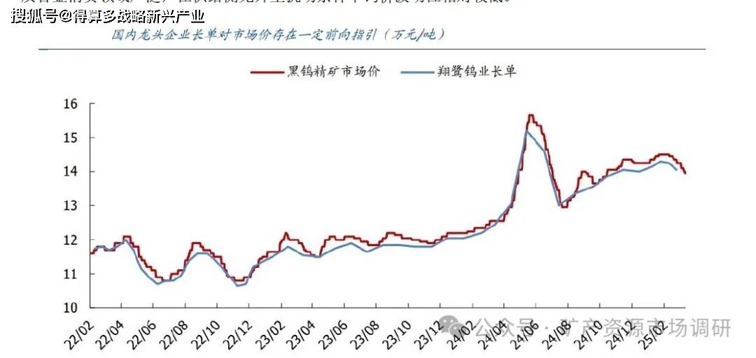 资源端高度集中,行业充分自律,易形成供销协同。国内钨精矿供应高度集中,2024 年钨精矿产能CR5达61%,主流供应商在行业协会及政府引导下易形成供销协同。如2016、2019 价格低位时,主流供应商采取联合减产的方式挺价并实际落地,驱动钨价拐点来临。