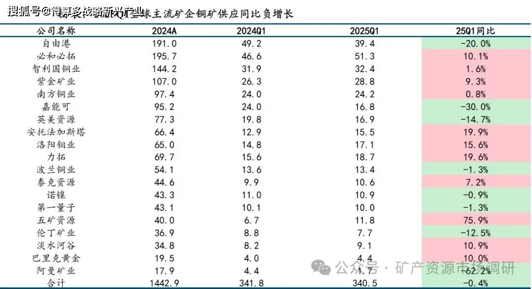 2025Q全球主流铜矿企业供应同比负增长,矿端供应收缩持续兑现。我们统计全球主流旧家铜矿企业,2025Q产量合计同比-0.4%。智利矿区受2月停电事件及品位下滑影响影响,产量出现大幅下滑,印尼矿区(自由港PT-FI及阿曼矿业的BatuHijau)由于冶炼厂建设延期等影响出现大幅下滑。