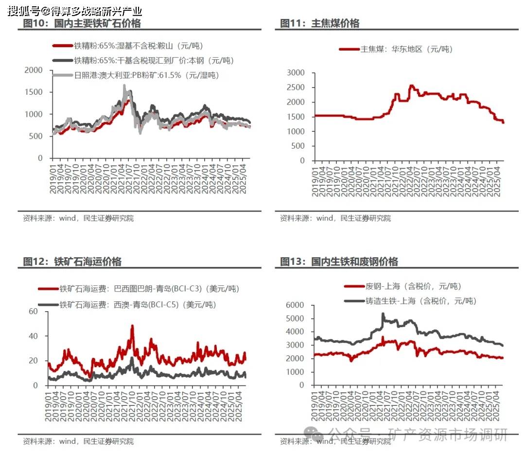 国产矿市场价格稳中有跌,进口矿市场价格震荡,废钢价格下跌。截至6月27日,本周鞍山铁精粉价格725元/吨,较上周持平;本溪铁精粉价格829元/吨,较上周持平;唐山铁精粉价格809.64元/吨,较上周降18元/吨;国产矿市场价格稳中有跌。本周青岛港巴西粉矿805元/吨,较上周持平;青岛港印度粉矿680元/吨,较上周降5元/吨;连云港澳大利亚块矿630元/吨,较上周降3元/吨;日照港澳大利亚粉矿707元/吨,较上周降3元/吨;日照港澳大利亚块矿859元/吨,较上周升9元/吨;进口矿市场价格震荡。本周海运市场下跌。本周末废钢报价2050元/吨,较上周降30元/吨;铸造生铁2970元/吨,较上周降30元/吨。