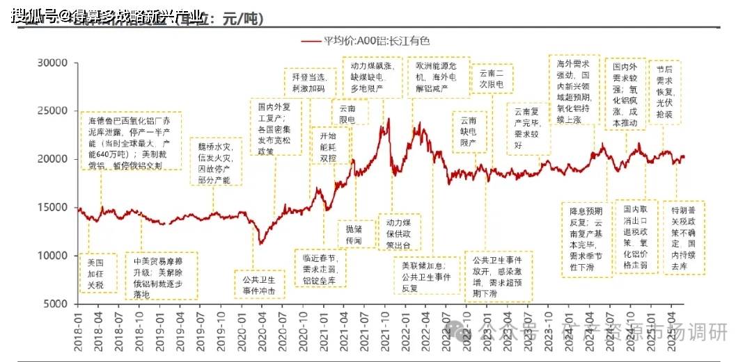 铝价复盘:2024 年 底特朗普胜选,贸易政策的不确定性及对美国经济前景的担忧影响需求, 叠加 国内取消出口退税政策,铝价承压走弱。进入 2025 年 1 月,国内氧化铝价格因产能过剩预期价格快速下跌,电解铝成本下降明显,压制铝价上涨。节后需求逐步修复,光 伏抢装持续,国内库存持续去化,拉动铝价上涨。 4 月特朗普政府对中国等国家发起对等关税,需求预期走弱,铝价短期下滑,但美国贸易政策反复,相继对包括中国在内的多个国家取消部分对等关税,同时国内需求超预期,铝锭库存持续创新低,铝价震荡向上,保持强势。
