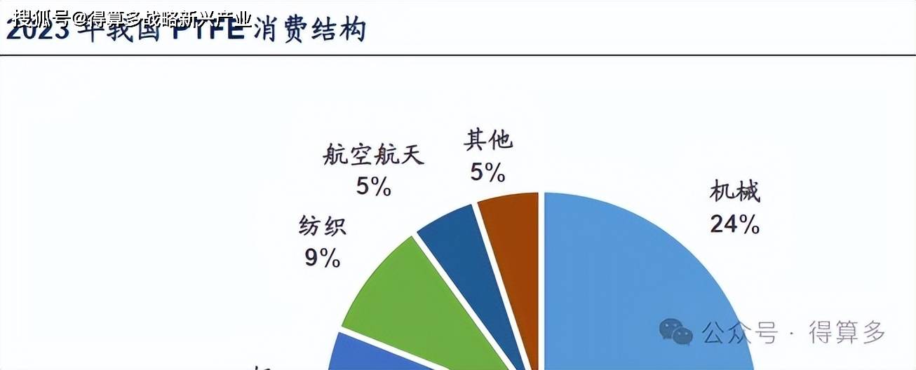 PTFE 下游应用广泛,主要用于石油化工、机械和电子电器领域。2023 年我国PTFE 下游消费领域包括机械、石油化工、电子电器、轻工、纺织、建筑、航空航天等,其中机械、石油化工和电子电器为主要消费领域,占比分别为24%、20%、15%。