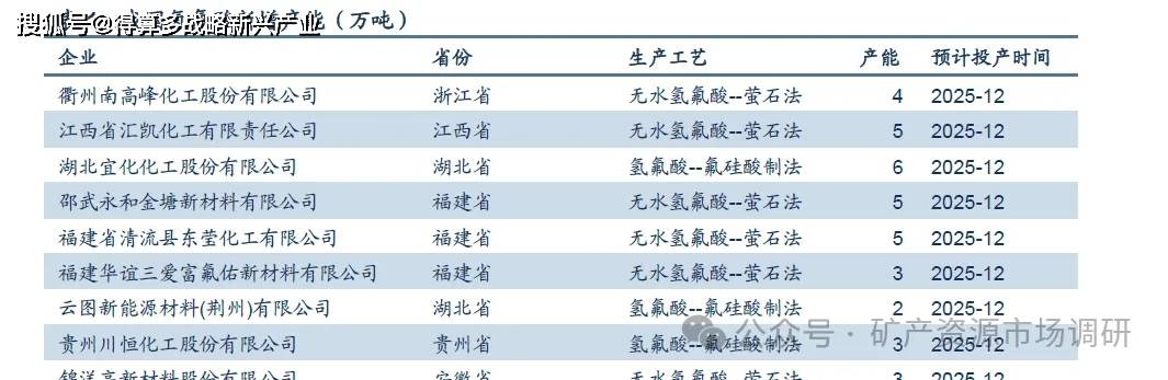 从氢氟酸新增产能来看,我国氢氟酸行业产能扩张仍未结束。根据百川盈孚的数据,2025年4-12 月有共计87 万吨的氢氟酸产能预计投产,届时产能将比2024 年产能增长25%。