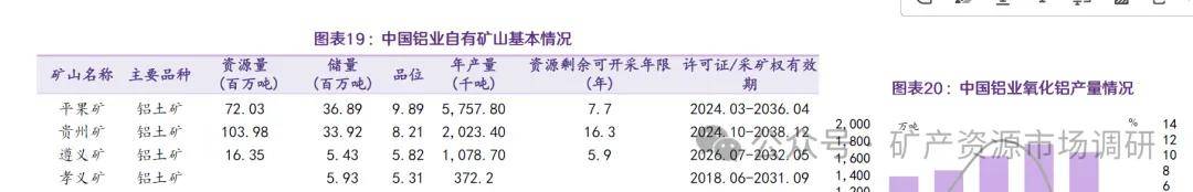 中铝旗下主力矿山为几内亚博法矿;氧化铝精炼方面,中国铝业2023年生产氧化铝1667万吨,同比-5.5%,2024H1生产1027万吨,同比+1.58%。