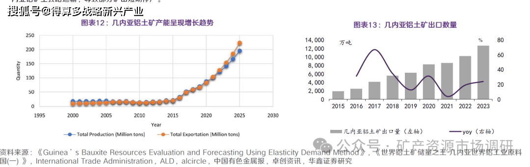 几内亚出矿量增长迅速,2025年产量有望增长至1.957亿吨。据《Guinea’s Bauxite Resources Evaluation and Forecasting Using Elasticity Demand
