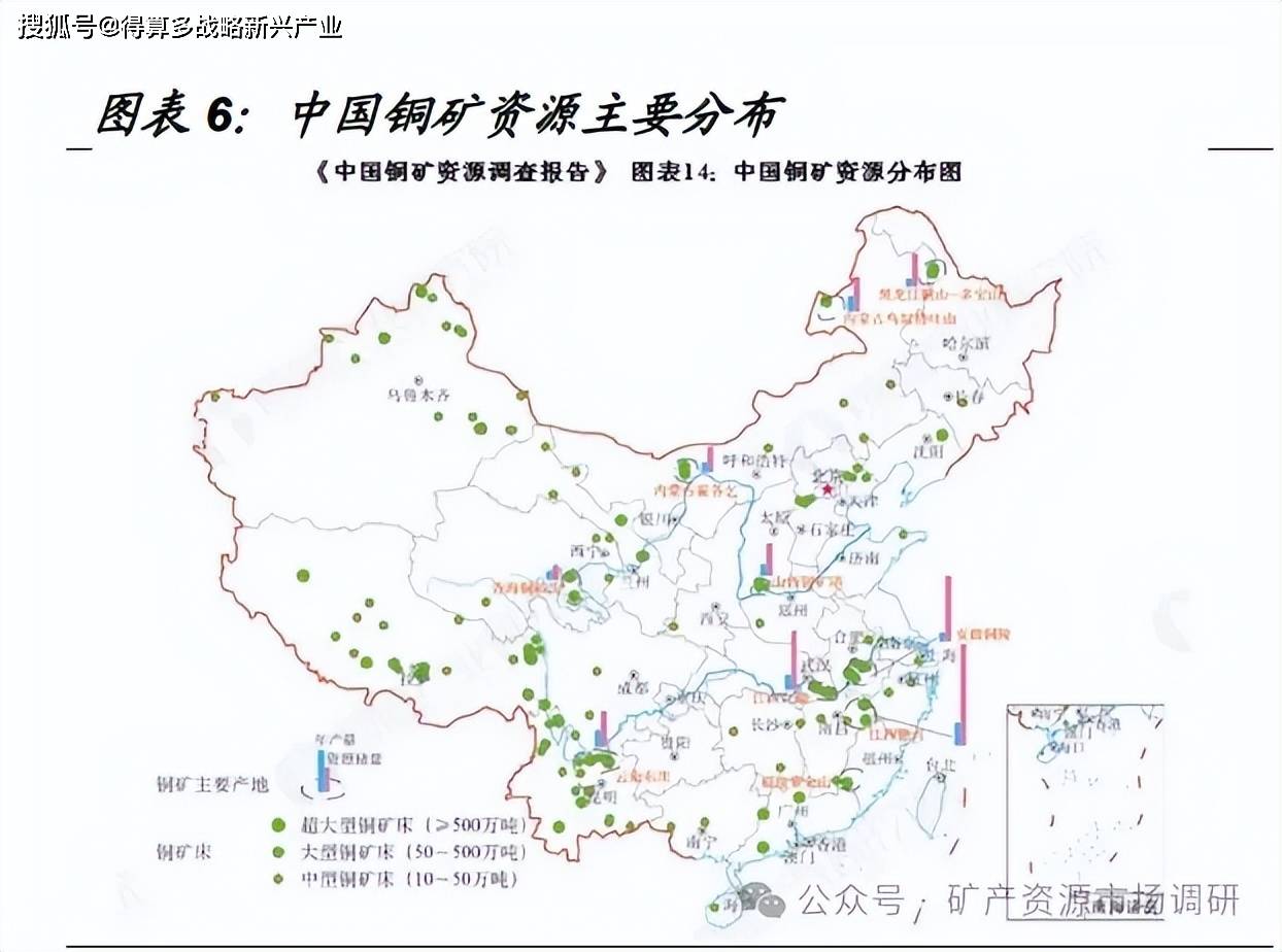 截至2024 年,中国铜矿储量约为4100 万吨(2023 年因青藏高原新发现铜矿资源量,使中国铜矿储量从0 34 亿吨增至0 41 亿吨),占全球总储量的4.07%4.07%,位列全球第六。