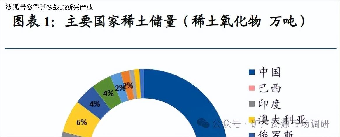 全球稀土资源分布集中度较高,中国储量世界第一占全球储量比约48%。根据自然资源部转引美国地质调查局(USGS)最新公布数据显示,2024 年全球稀土资源总储量约为9088 万吨,其中中国储量为4400 万吨,占比约48%,巴西储量2100 万吨,占比23%,印度储量690 万吨,占比8%,澳大利亚储量570 万吨,占比6%,前四大稀土资源持有国资源储量合计超过全球总储量的85%,资源分布集中度较高。