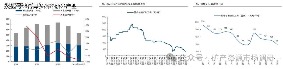 改善,炼厂原料经过进口铅矿、进口银铅矿以及粗铅等补充,加工费持续向上调整。25年上半年修复乏力,截至11月初TC仅为290元/吨,处于历史低位。
